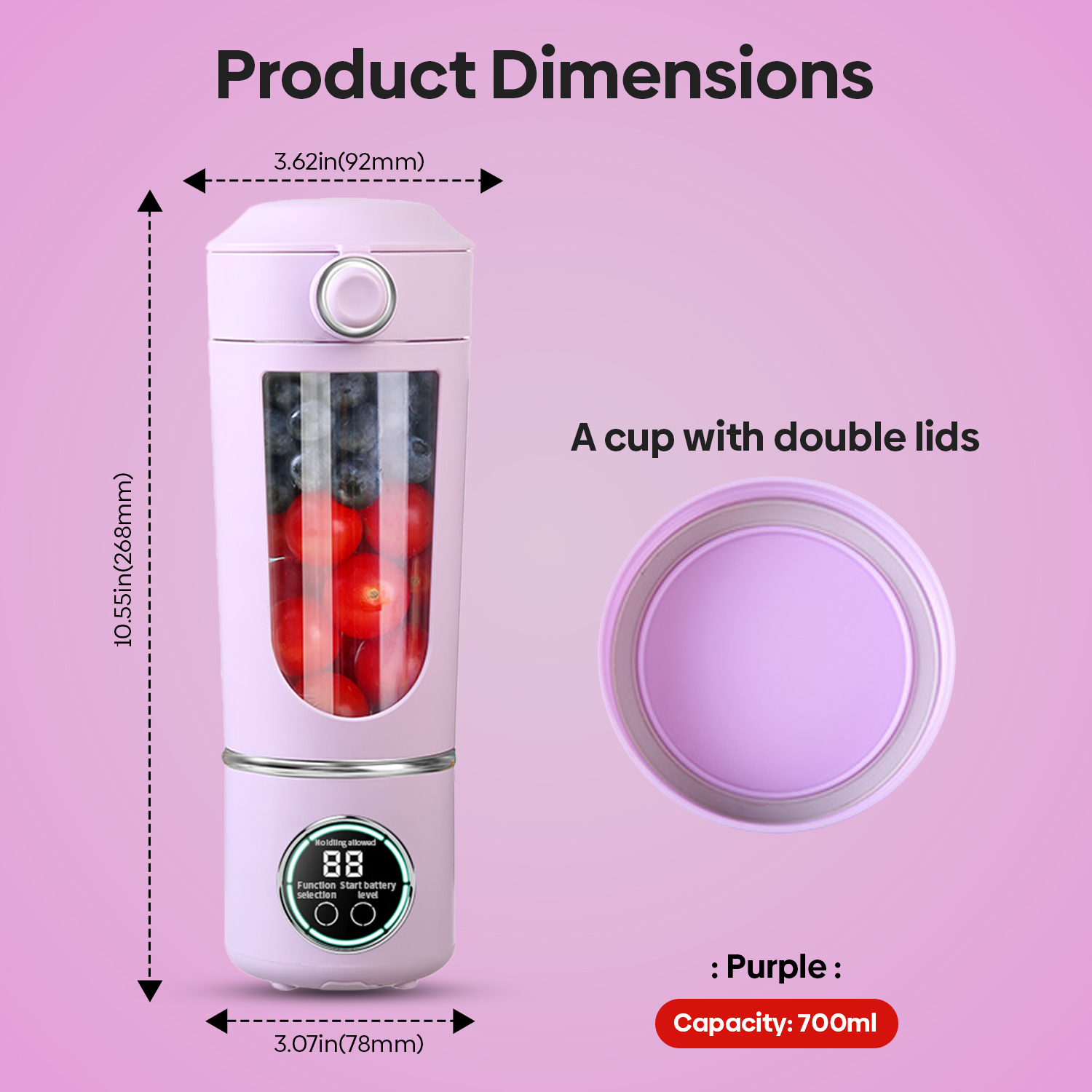 ARABIQO Rechargeable Personal Blender 700ML, Portable Smoothie & Shake Juicer Cup with Stainless Steel Blades, USB-C Rechargeable, Leakproof Lid, BPA Free, Dishwasher Safe, for Home, Office, Travel