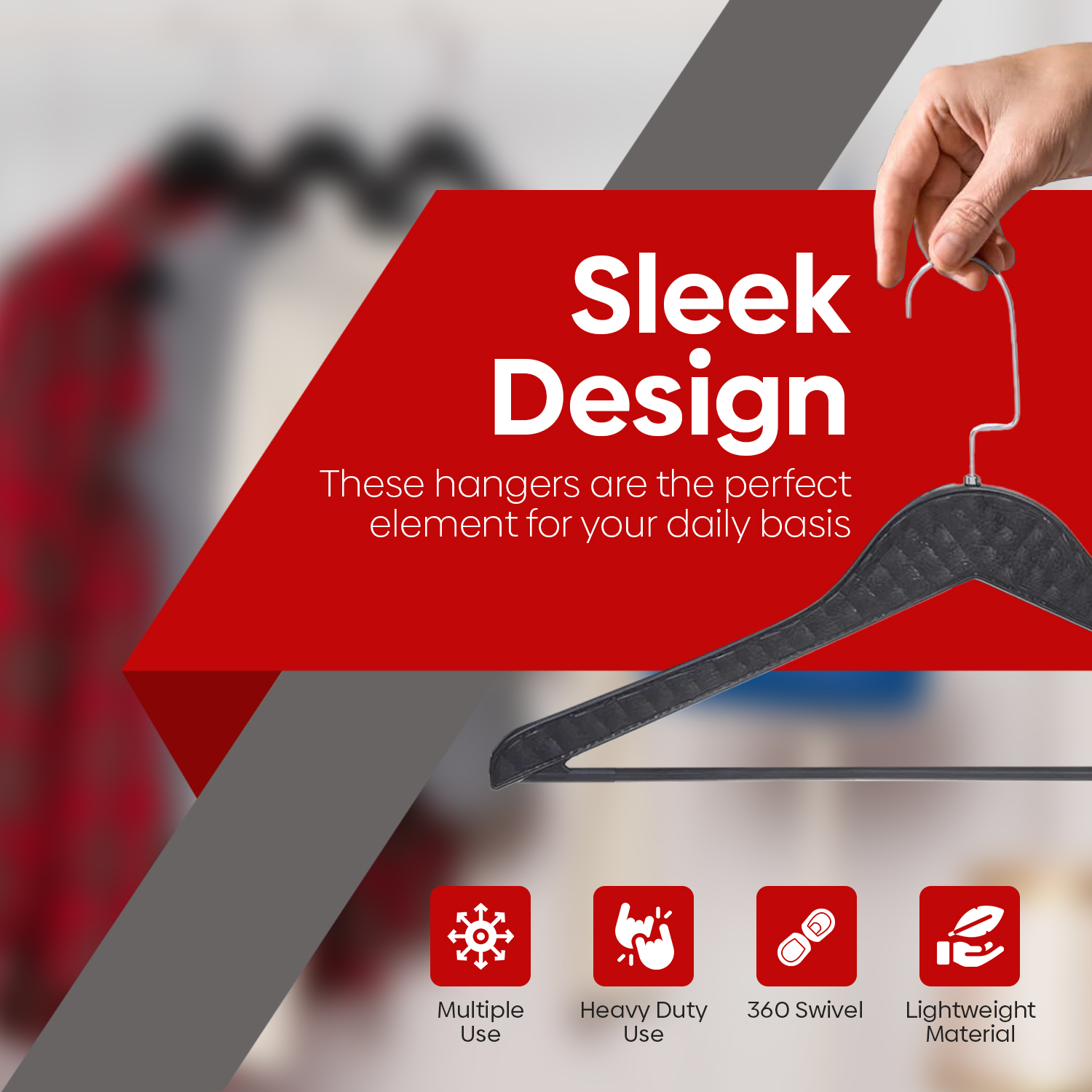 Thanks to their space-saving design, they help you maximise your wardrobe, making them a great choice for bedrooms, bathrooms, or any home rack system. This 6-pack set provides great value, offering a reliable solution for organising your clothing and accessories.