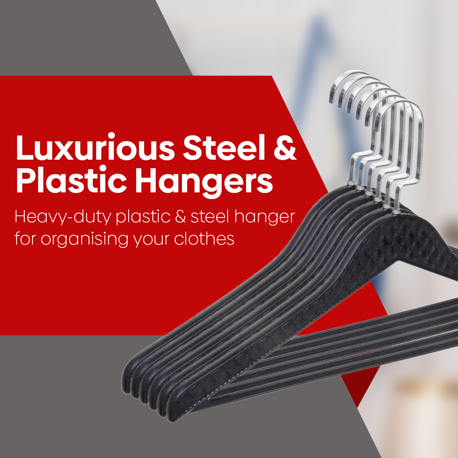 Keep your clothes perfectly organised with ARABIQO Heavy-Duty Plastic & Steel Hangers. Designed with durability and functionality in mind, these non-slip hangers are ideal for keeping your clothes wrinkle-free, neatly stored, and easily accessible.