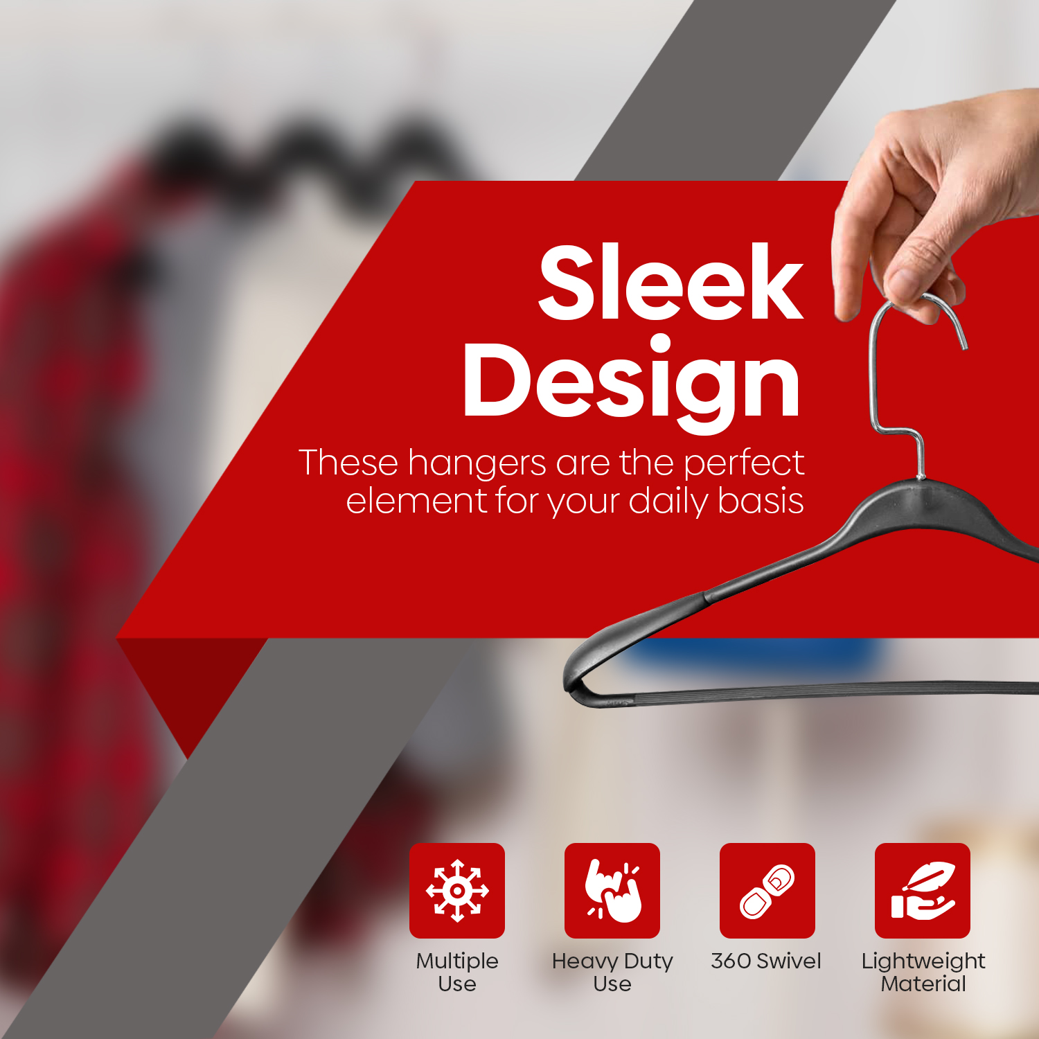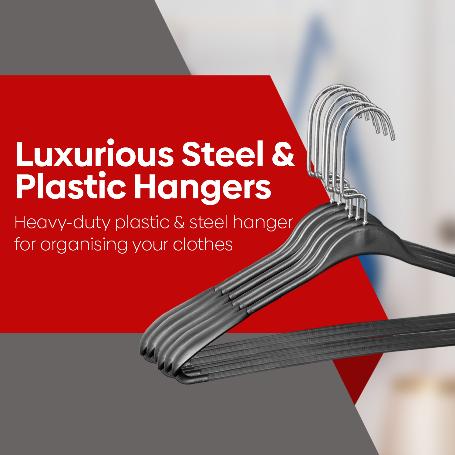 Upgrade your wardrobe organization with ARABIQO Heavy-Duty Plastic & Steel Hangers – the perfect combination of strength, functionality, and style. Each hanger features a durable plastic frame reinforced with steel, providing exceptional stability and long-lasting use. The 360° rotating hook offers effortless access from any direction, while the non-slip shoulders keep your clothes secure and wrinkle-free.