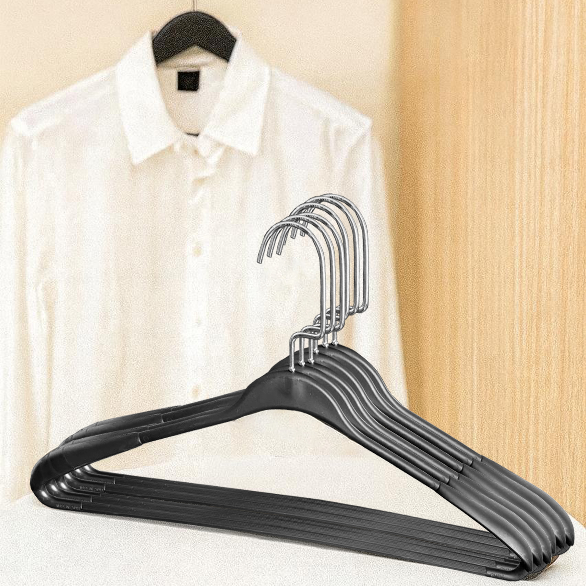 Heavy-Duty Plastic & Steel Hangers, 6 Pack Wardrobe Organiser – Non-Slip Clothes Hangers with 360° Rotating Hook, Durable Coat & Dress Hangers for Closet, Bedroom, Laundry Room (Black)