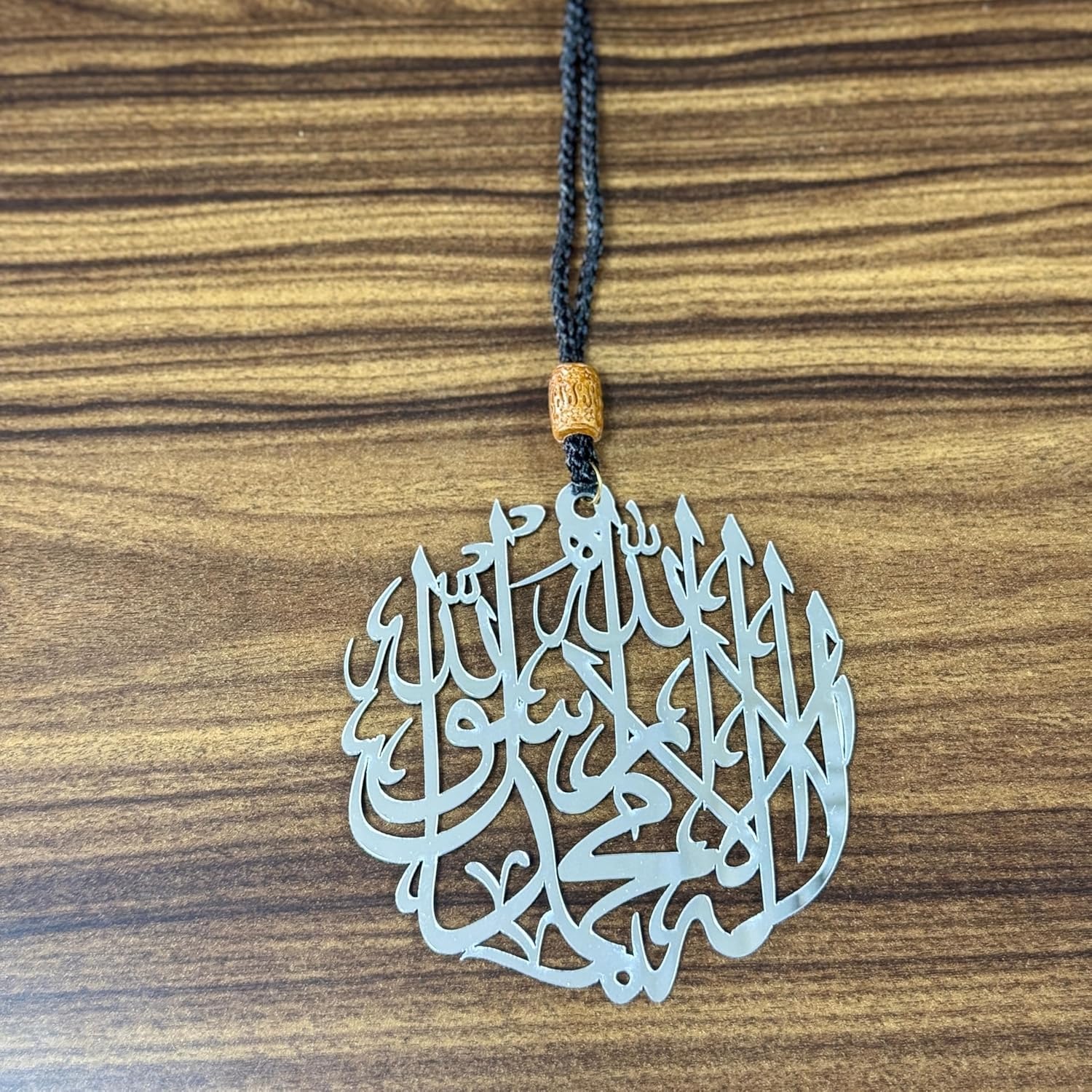 Islamic Car Hanger, Acrylic First Kalima Hanging Ornament for Rear View Mirror | Arabic Calligraphy Allah Decoration | Muslim Spiritual Gift for Men & Women (Silver)
